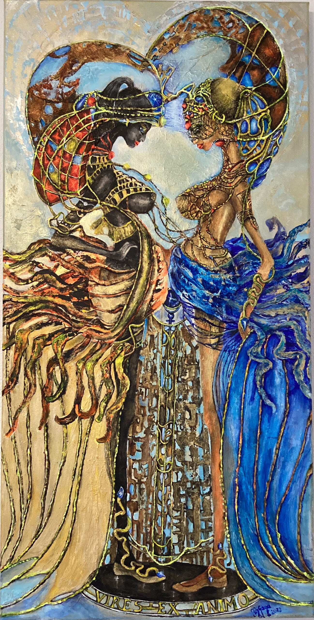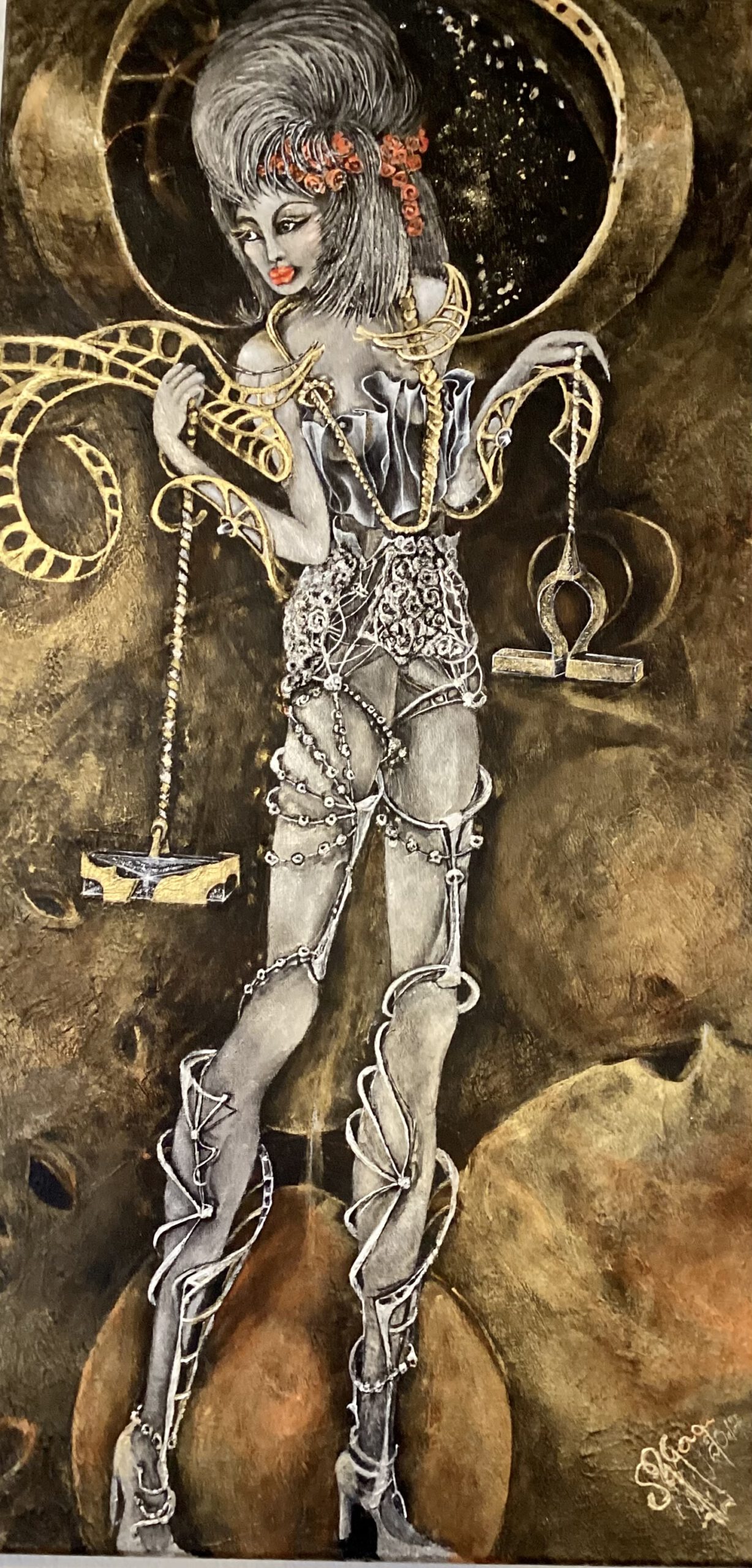 Door mijn kleur keuze het gebruik van symbolen en het afbelden van het personen in bepalde poses ontstaat een weerspiegeling van emoties die elk van het Sterrenbeelden op zijn eigen wijze uitstraalt .Daarmee probeer ik niet alleen mijn eigen visie op dat onderwerp te laten zien maar bied ik de toeschouwer de gelegenheid om zijn eigen emoties te ervaren en zijn eigen gedachten te vormen….daarnaast met dat collectie tracht ik toekomstige generaties te informeren over Sterrenbelden en hun historische context .